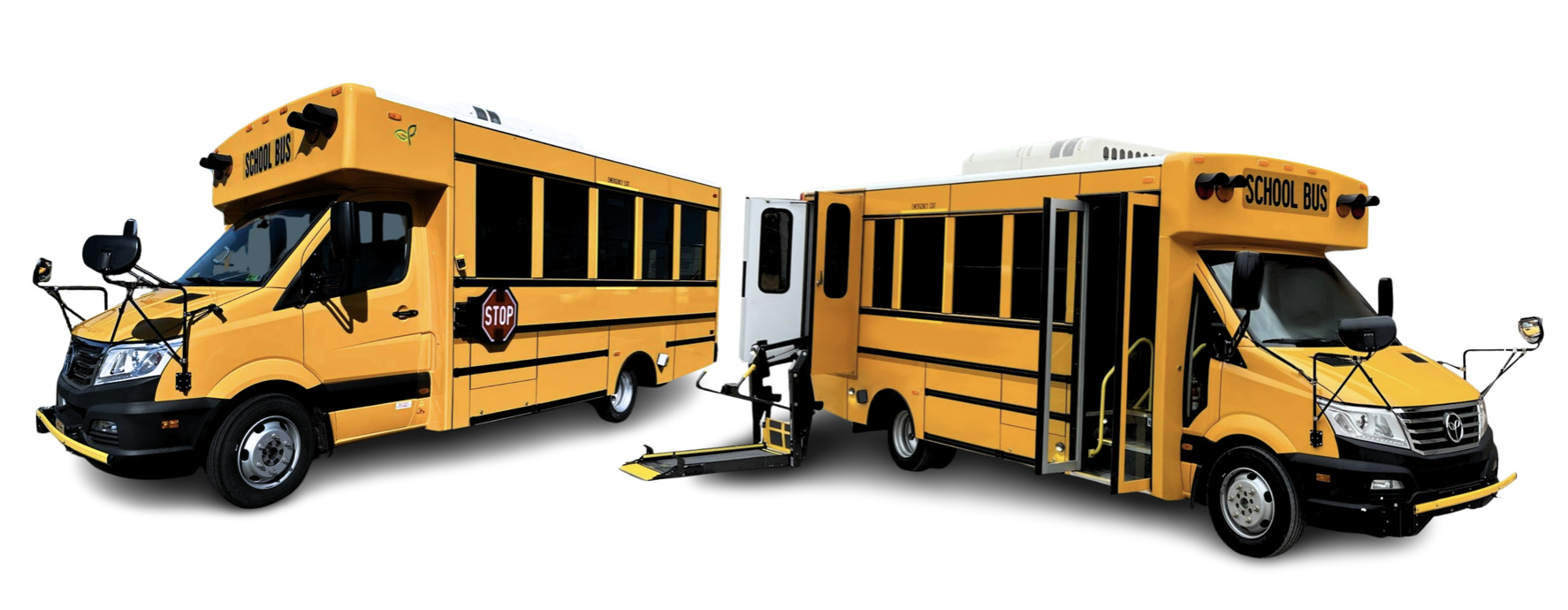 The first four buses off the production line delivered to West Virginia school districts are the Nano BEAST and Nano BEAST Access. The Nano BEAST is a Type A all-electric, purpose-built, zero-emission school bus with seating for up to 24 students. The Nano BEAST Access option has seating for up to 18 ambulatory passengers and up to 3+ Q’STRAINT wheelchair securements, complemented with a BraunAbility rear curbside lift.